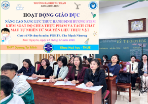Thực hiện nhiệm vụ phổ biến tri thức khoa học và thúc đẩy các hoạt động giáo dục STEM trong cộng đồng, Chi hội Hóa học – Liên hiệp các Hội Khoa học và Kỹ thuật tỉnh Thái Nguyên, phối hợp với Khoa Hóa học, Trường Đại học Sư phạm – Đại học Thái Nguyên và Trường THPT Dương Tự Minh đã tổ chức chương trình trải nghiệm giáo dục STEM cho học sinh nhà trường vào ngày 12/03/2026. Hoạt động nhằm góp phần tăng cường gắn kết giữa đào tạo đại học với thực tiễn dạy học ở trường phổ thông, đồng thời lan tỏa tinh thần học tập sáng tạo trong các môn Khoa học Tự nhiên.