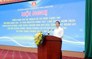 Sáng 3/4, UBND tỉnh tổ chức Hội nghị triển khai các Kế hoạch về tổ chức Cuộc thi “Đổi mới sáng tạo – Vì Thái Nguyên thân yêu” lần thứ 2, năm 2026; Chiến dịch 100 ngày số hóa, làm sạch, chuẩn hóa dữ liệu; công tác đăng ký đất đai, lập hồ sơ địa chính và hoàn thành cơ sở dữ liệu đất đai và phát động phong trào thi đua trên địa bàn tỉnh. Dự Hội nghị có các đồng chí: các đồng chí: Vương Quốc Tuấn, Ủy viên Ban Chấp hành Trung ương Đảng, Phó Bí thư Tỉnh ủy, Chủ tịch UBND tỉnh; Mai Văn Phấn, Phó Cục trưởng Cục Quản lý đất đai (Bộ Nông nghiệp và Môi trường); các đồng chí Thường trực Tỉnh ủy; lãnh đạo Đoàn ĐBQH, HĐND, UBND, Ủy ban MTTQ tỉnh; lãnh đạo các sở, ban, ngành, đoàn thể, Đại học Thái Nguyên, Liên hiệp các Hội Khoa học tỉnh và các tổ chức hội trên địa bàn tỉnh; đại diện các tổ chức khoa học và công nghệ cùng các nhà khoa học trên địa bàn tỉnh. Hội nghị được kết nối trực tuyến với 92 điểm cầu xã, phường.
